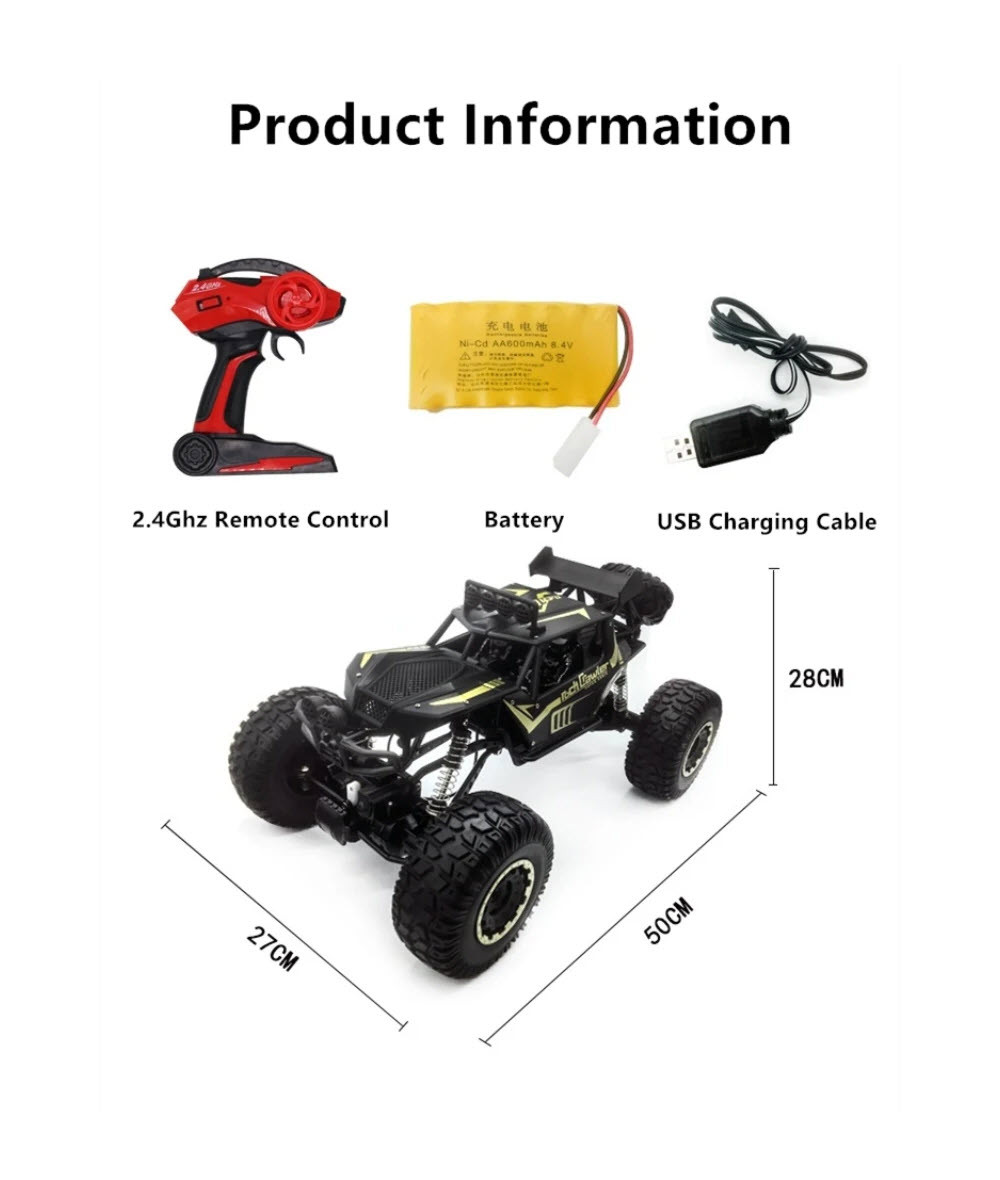 The 1:8 Large RC Rock Crawler Car is a powerful off-road remote control vehicle designed for kids who love adventure and action. Built with a die-cast metal body, strong suspension, and 4WD system, this rock crawler easily climbs rocks, sand, grass, and rough terrain. Its large size and rugged tyres provide excellent stability and realistic off-road performance. Suitable for kids aged 6 years and above, this RC crawler helps develop motor skills, coordination, and imagination. A perfect gift choice for birthdays and special occasions in Sri Lanka.